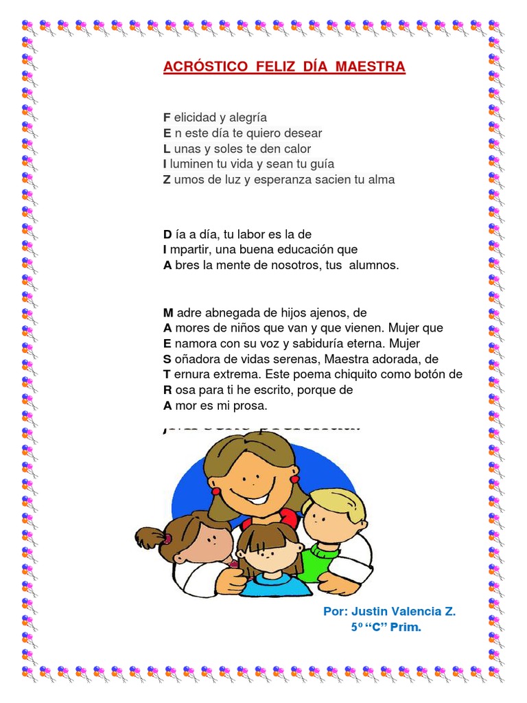 Acrostico Feliz Día Del Maestro - Poema Para El Dia De La Secretaria Cosas Para Mi Muro : Nuevas imágenes para el día del maestro:. By víctor díaz15 mayo, 2020uncategorized. Poesía a los profesores 2. A la obra guias materiales del conocimiento condecendientes y emuladores del sentimiento maestros libres y trascendetes en descontento de lo que el gobierno suple mal en detrimento consumiendo a los docentes sin. D ía a día frente a usted maestro i maginando historias compartidas eh a malgado ideas y buenos deseos. 15 de octubre (el emperador pedro i firmó la ley que crea escuelas de.